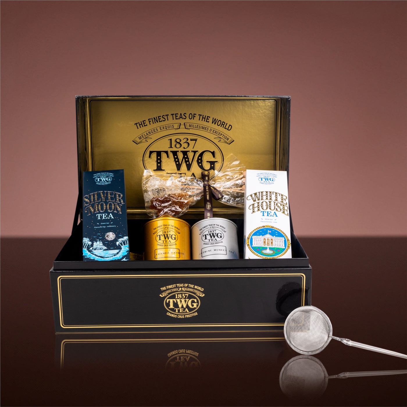 Indulge in the finest teas from around the world with TWG Tea! This exquisite gift set features a variety of premium blends, including Silver Moon Tea and White House Tea. The set comes in a luxurious black box with a reusable tea infuser, making it the perfect gift for any tea lover. Discover the rich flavors and aromas of these exceptional teas and elevate your tea experience.